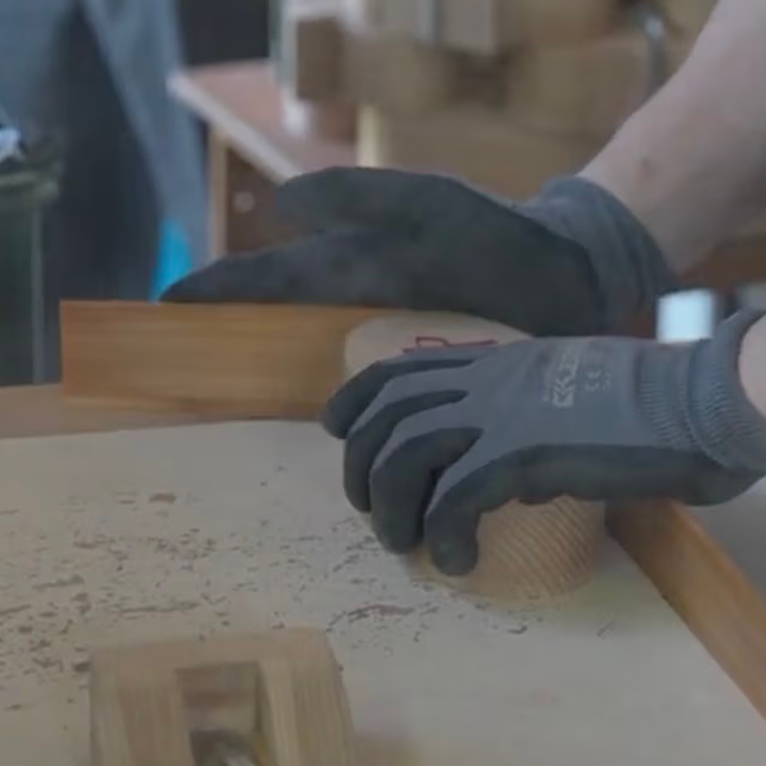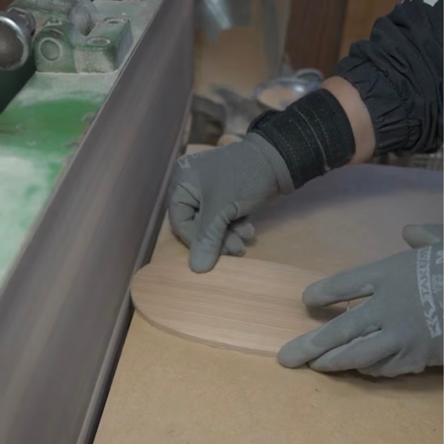 底板は一個ずつ手で削り、身の部分に合わせながら調整を繰り返します。機械でやってしまうのではなく、手の感覚で調整しています。