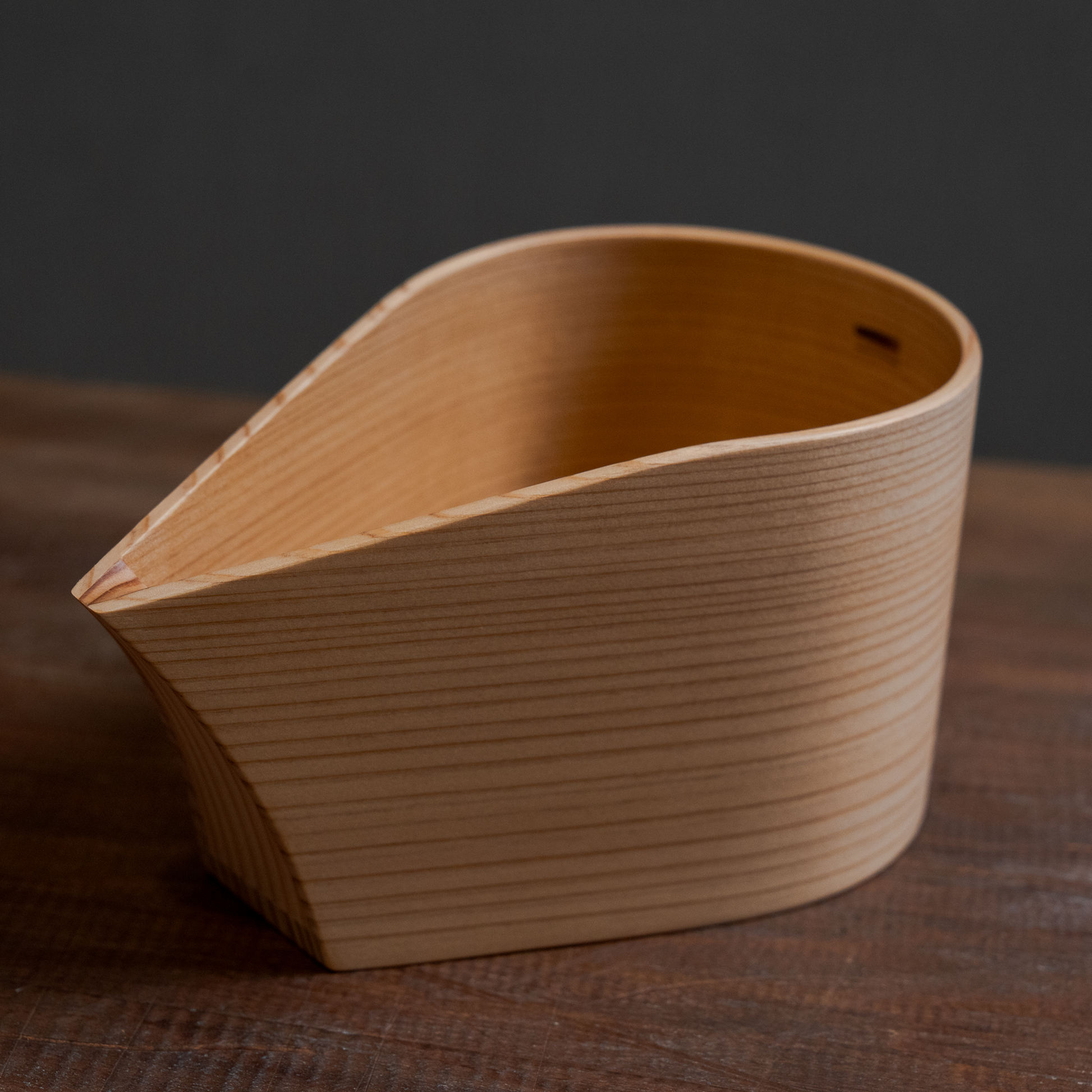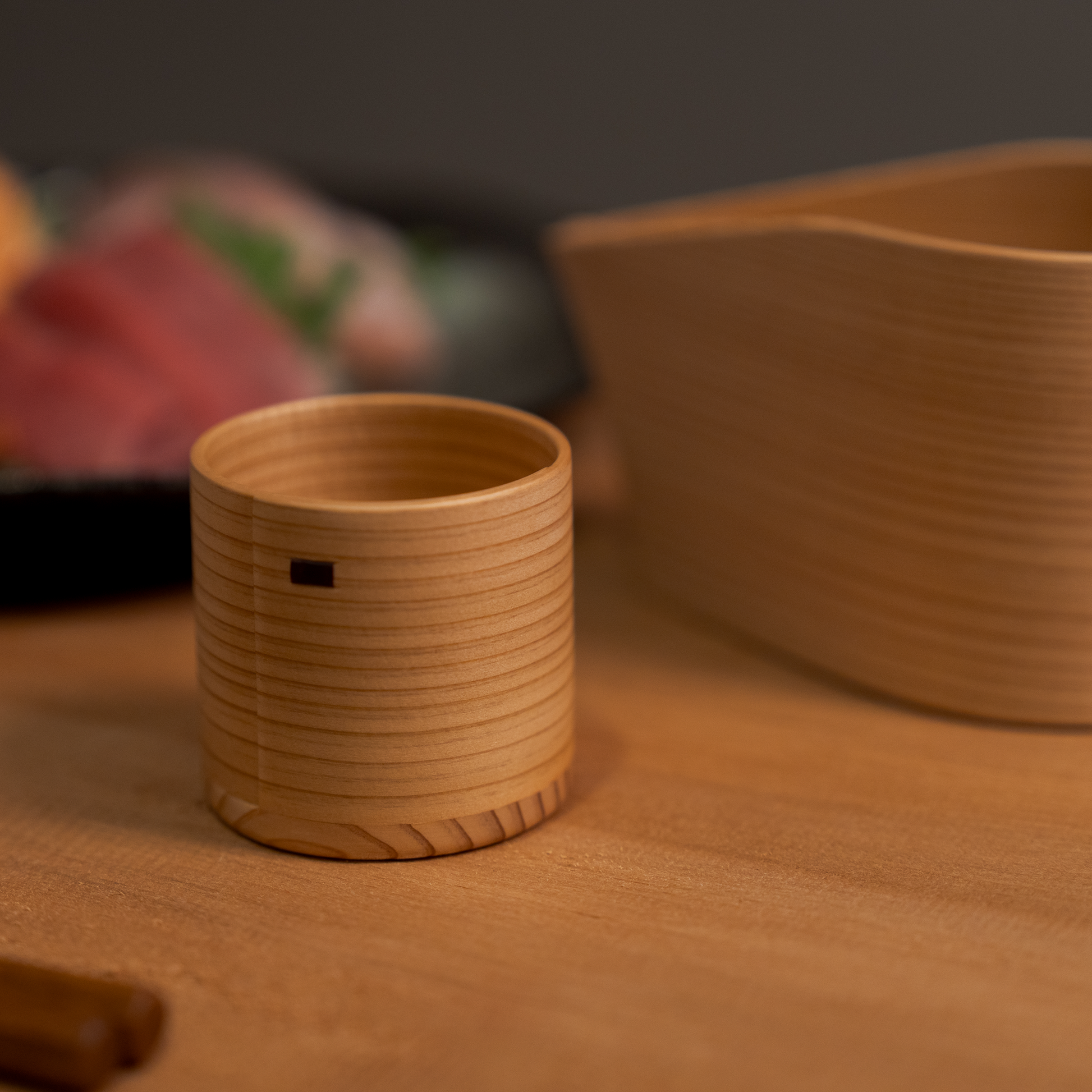 “使いやすさ”と“美しさ”、そして“安心”を兼ね備えた、曲げわっぱの酒器です。